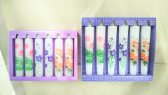 菊・桔梗・蓮の花の描かれた絵ローソクです 長さ15cmの大が2,145円(税込) 長さ12cmの小が1,540円(税込) さとう葬祭本社ショールームで販売しています