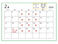 2月の営業日です。 皆様のご来店をお待ちしております。