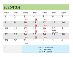 3月の営業カレンダーです。 皆様のご来店を心よりお待ちしております。